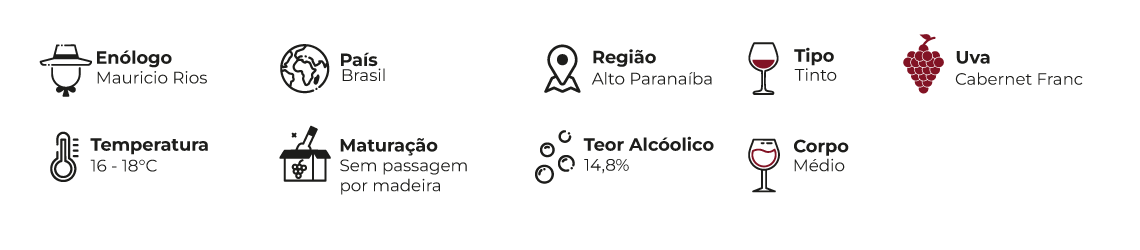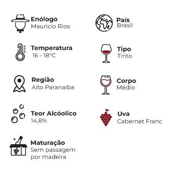 Técnica de Vinificação: Produzido a partir de uvas colhidas manualmente, cultivadas em espaldeira com dupla poda, sem passagem por madeira.