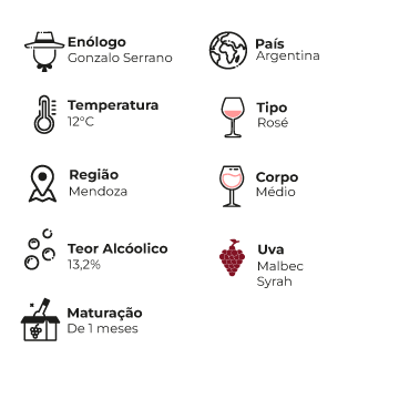 Notas de Prova: Cor rosa suave e vibrante, este vinho revela delicados aromas florais acompanhados de sutis nuances cítricas. Em boca, é fresco e persistente, exibindo notas frutadas harmonizadas por uma acidez equilibrada.