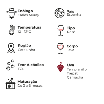 Notas de Prova: Cor rosa claro com reflexo de casca de cebola. Aromas sutis e delicados, frutas como mirtilo e morangos silvestres. Ao paladar é macio, tem estrutura e acidez refrescante e termina de modo agradável.