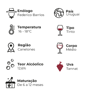 Notas de Prova: Um corte clássico do Uruguai, em que a Merlot suaviza a intensidade da Tannat, revelando taninos doces. Sem passagem por barrica, destaca aromas e sabores de frutas vermelhas, pretas e flores. Estruturado, mas com textura aveludada.