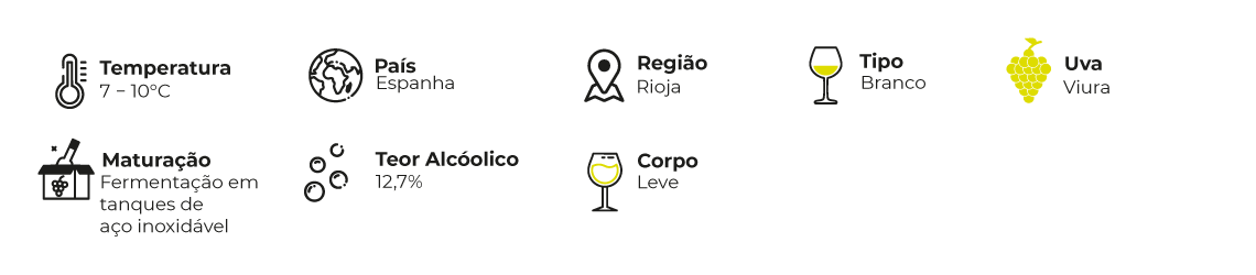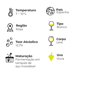 Técnica de Vinificação: Após 24 horas de decantação a frio, o mosto limpo é fermentado a temperatura controlada em tanques de aço inoxidável para realçar o aroma e todas as qualidades da uva Viura e transmiti-las fielmente ao vinho.