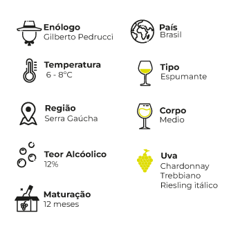 Técnica de Vinificação: Método tradicional com 24 meses em contato com as leveduras.