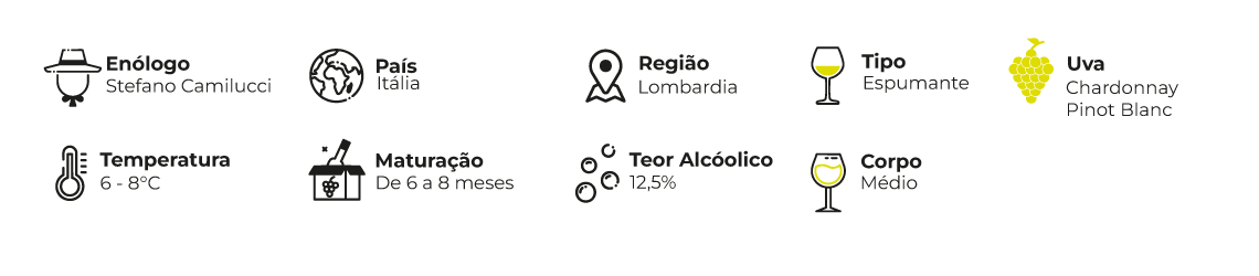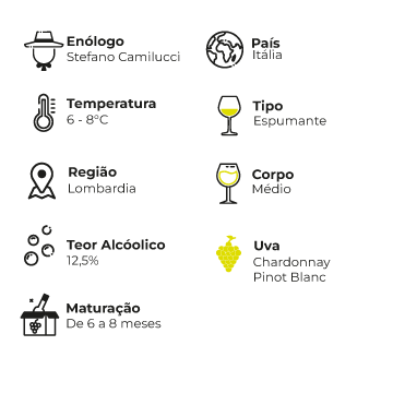 Notas de Prova: apresenta coloração amarelo-palha brilhante com borbulhas finas e persistentes. No nariz revela aromas elegantes de flores brancas, frutas de polpa branca como pera e maçã, além de delicadas notas de pão fresco e brioche. No paladar é cremoso e sedoso, com frescor equilibrado, ótima harmonia e final longo e elegante.