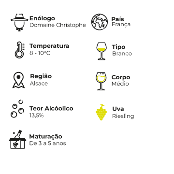 Notas de Prova: Vestido amarelo palha com reflexos dourados. Aromas cítricos complexos. Na boca, ataque delicado, revelando um vinho refinado, profundo e salino. Riesling seco, final refrescante e persistente.