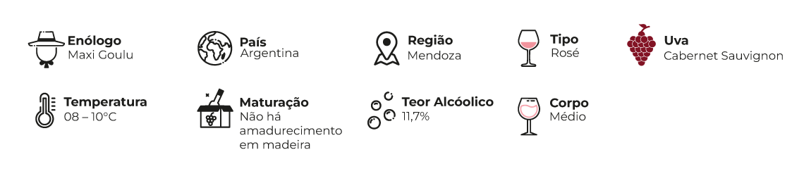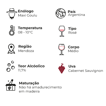 Notas de Prova: Apresenta coloração rosada suave, com tons de casca de cebola, brilhante e delicada. No nariz, revela aromas intensos e definidos de frutas frescas, convidativos e agradáveis. Em boca, tem entrada macia e equilibrada, expressando frescor, leveza e harmonia, resultando em um rosé delicado, refrescante e fácil de beber.