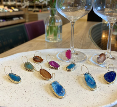 Adicione um toque de sofisticação aos seus momentos especiais com o nosso conjunto de marca-taças, feitos em chapa de ágata com acabamento dourado. Refinados e elegantes, esses acessórios de alta qualidade são ideais para destacar taças em eventos, além de facilitar a identificação das bebidas com estilo. O brilho natural da ágata combinado com o dourado cria um design luxuoso, perfeito para quem valoriza detalhes únicos e sofisticados. Um presente elegante ou um complemento indispensável para apreciadores de vinho.