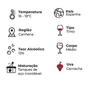Técnica de Vinificação: Maceração e fermentação em tanques de aço inoxidável durante 8 dias a uma temperatura controlada de 26-28 ºC.
