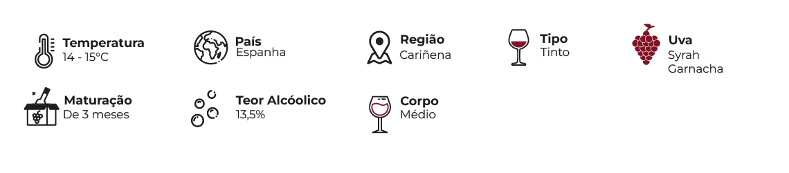 Notas de Prova: Apresenta um nariz de boa intensidade com aromas de frutos vermelhos, especiarias e cacau. Na boca, é rico, fino e com um perfil tostado proveniente do seu estágio em barricas.
