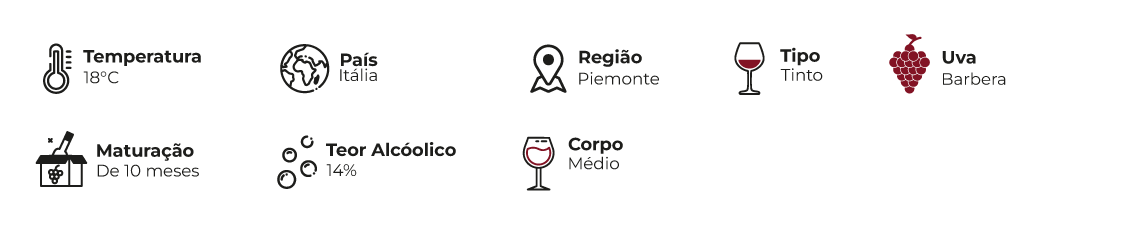 O Tenuta Garetto Rosina Barbera d’Asti DOCG é um tinto italiano vibrante e autêntico, que traduz com elegância a tradição da região do Piemont.