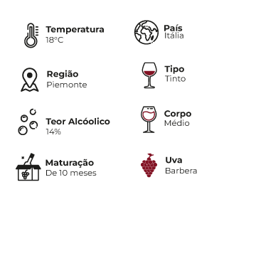 Técnica de Vinificação: O Barbera d'Asti Rosina provém, em geral, das vinhas mais jovens da propriedade. Após a fermentação, o vinho é amadurecido em recipientes neutros e engarrafado alguns meses antes de ser comercializado.